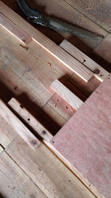 昨日までに私にとっては何の変哲もない木材の写真です。のこぎりに気付きすらしないかもしれません。